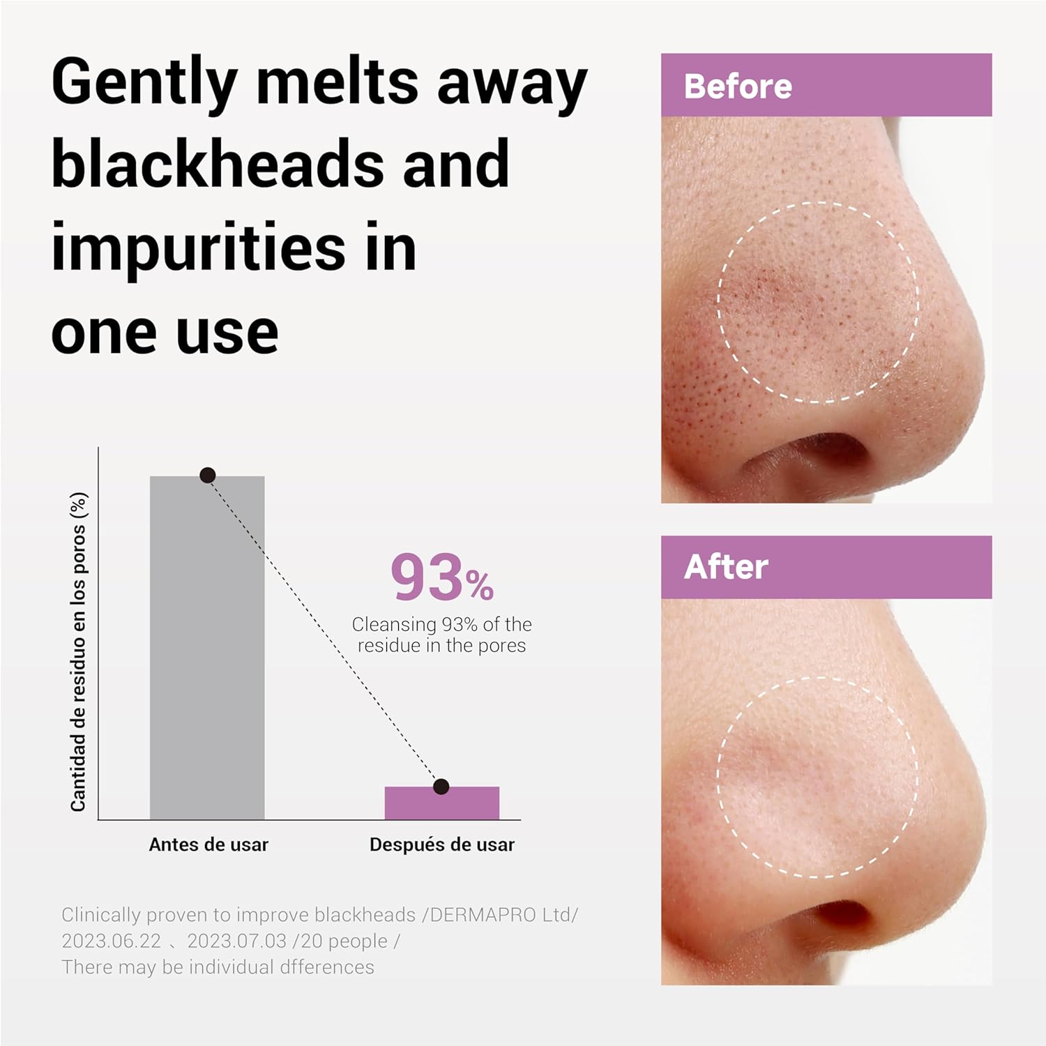 - Limpieza profunda: Elimina impurezas, maquillaje y residuos que pueden obstruir los poros.