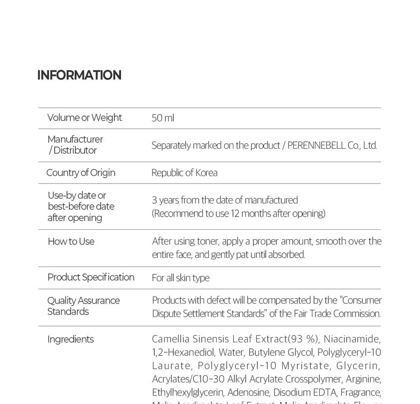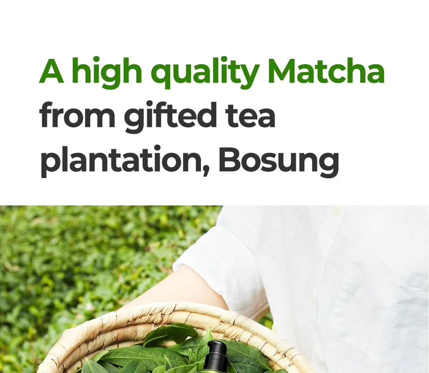 Este suero acuoso purifica, cierra e hidrata los poros con 93 % de agua Matcha, un Macha de alta calidad de Bosung, Corea del Sur.